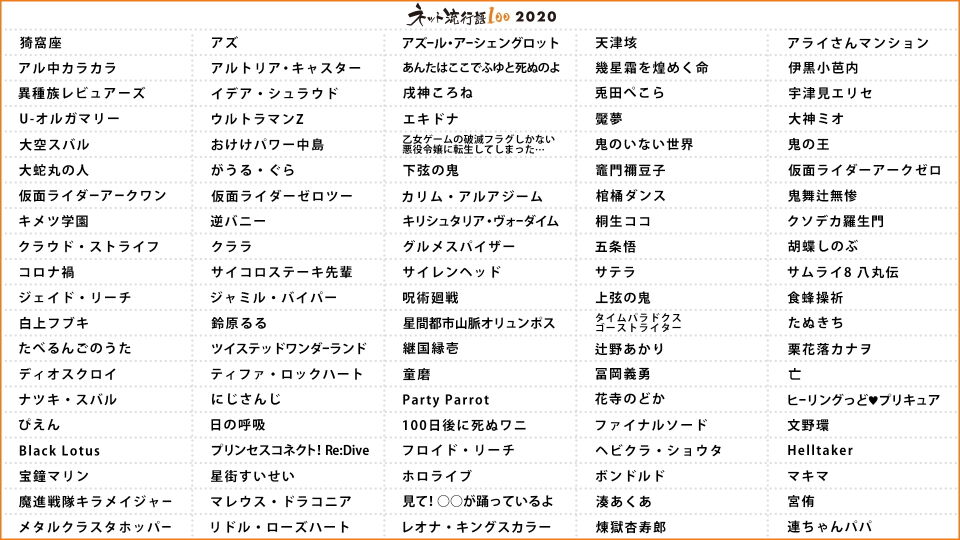 ■ネット流行語100 2020 のノミネート100 ラインナップ